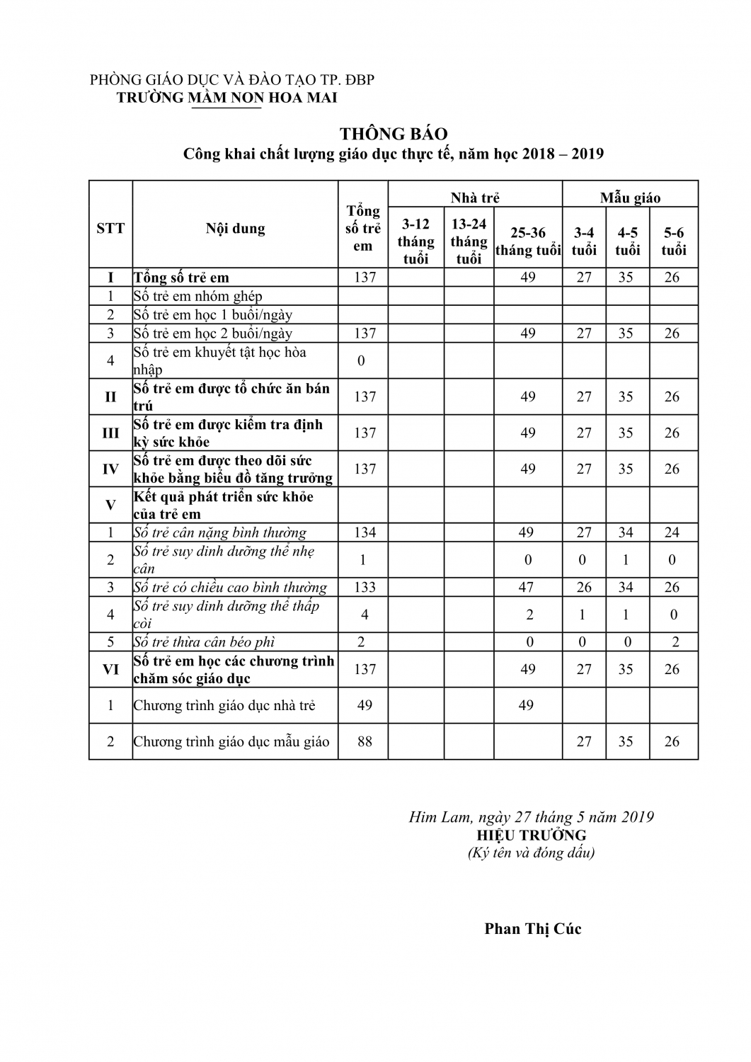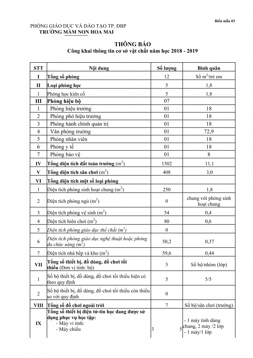 Trường Mầm non Hoa Mai - Phường Điện Biên Phủ