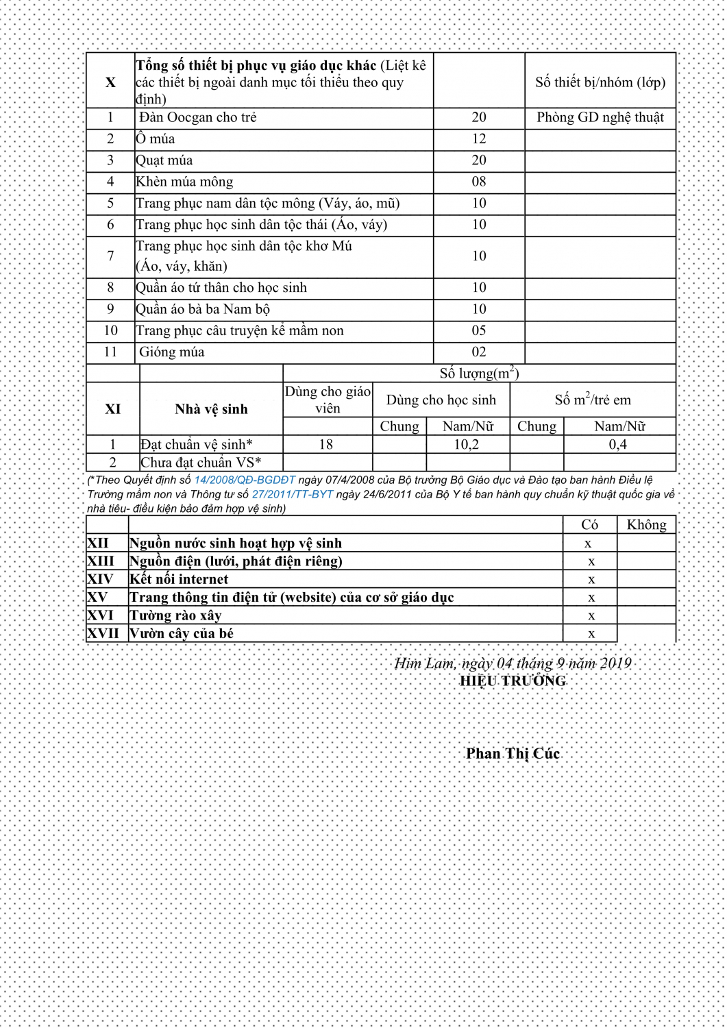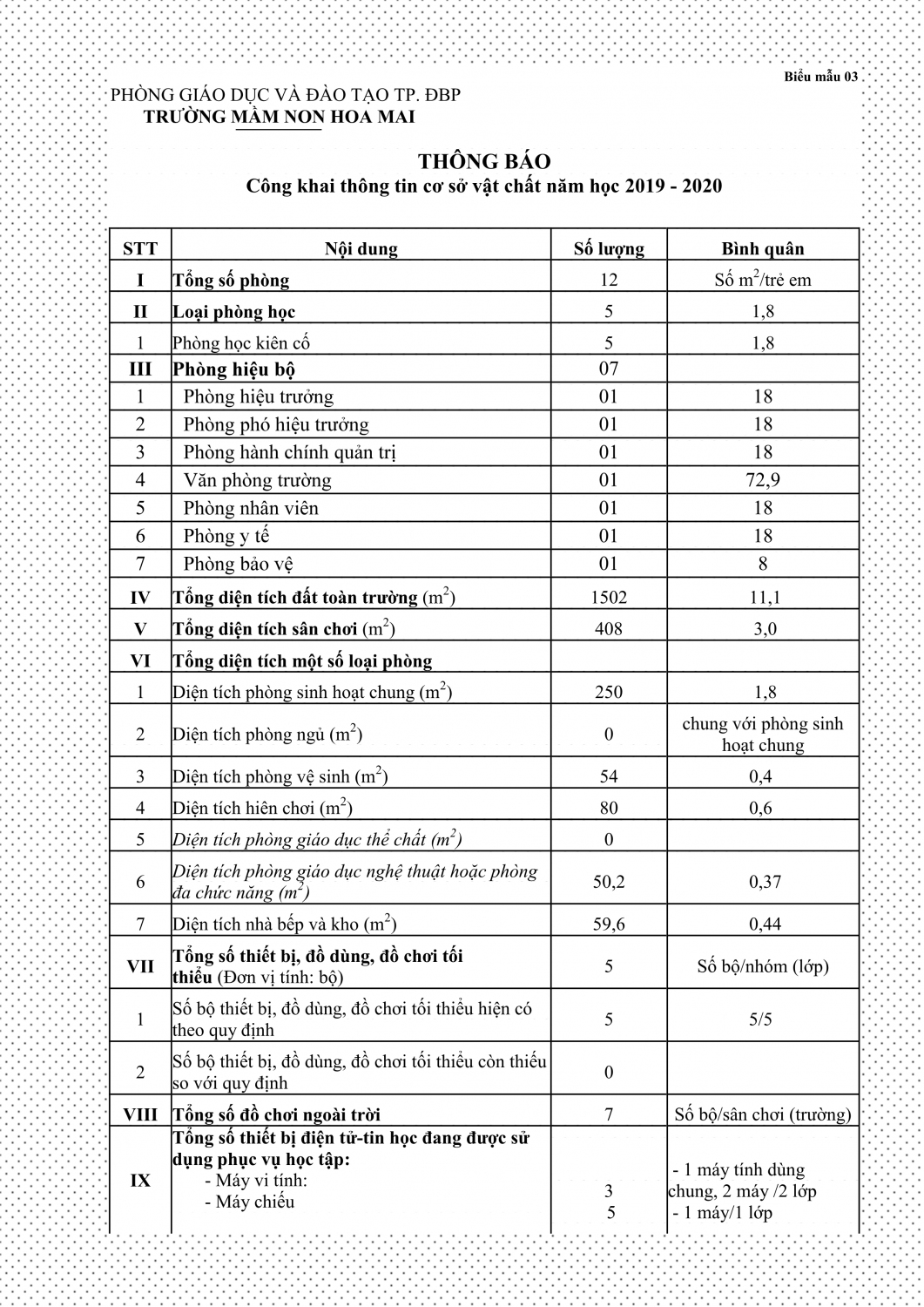 Trường MN Hoa Mai công khai các hoạt động giáo dục năm học 2019-2020
