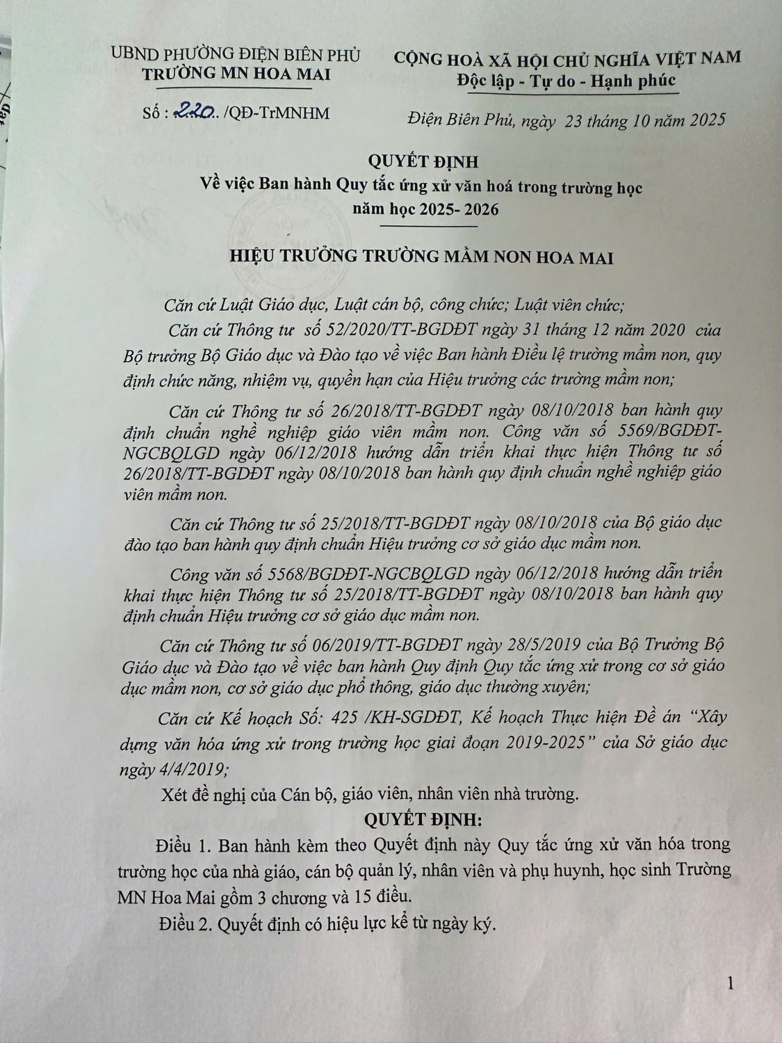 Quy tắc ứng xử văn hóa trong trường học năm học 2025-2026